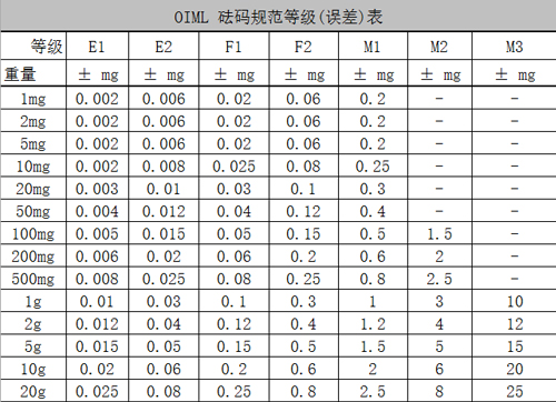 砝碼誤差表